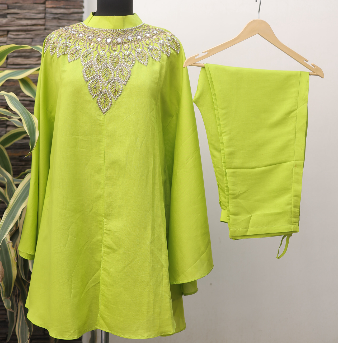 Dyeable Crush Tissue Fabric with Hand Embroidery – Elegant & Customizable