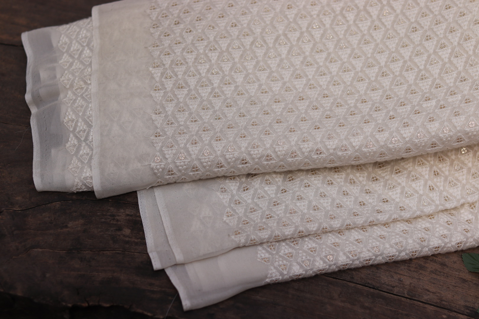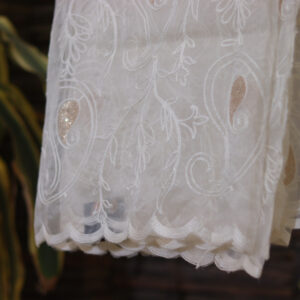 Soft georgette fabric with intricate Chicken hand embroidery on a dyeable base, perfect for crafting elegant, lightweight, and customized ethnic wear.