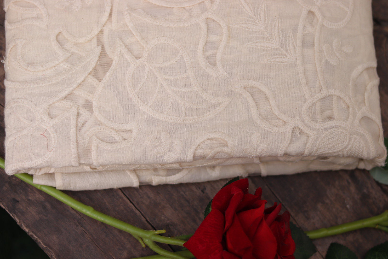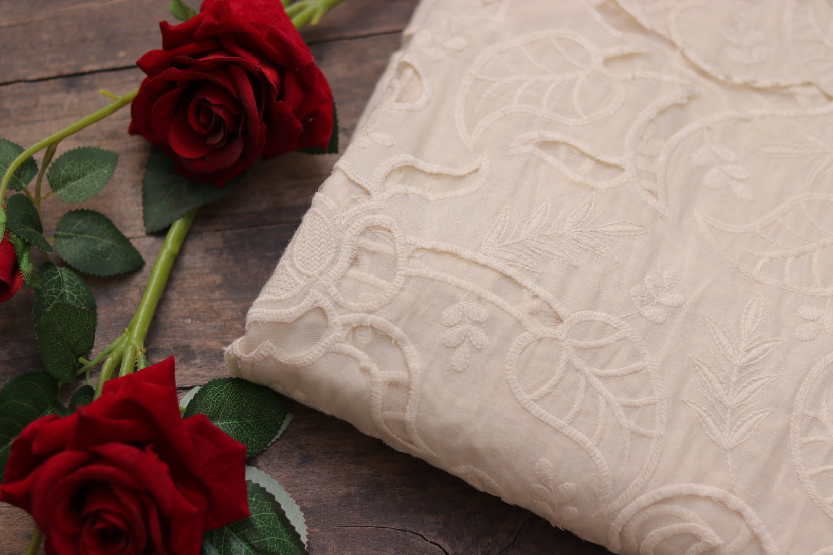 Dyeable Cotton Cutwork Designer Fabric – Customizable Elegance
