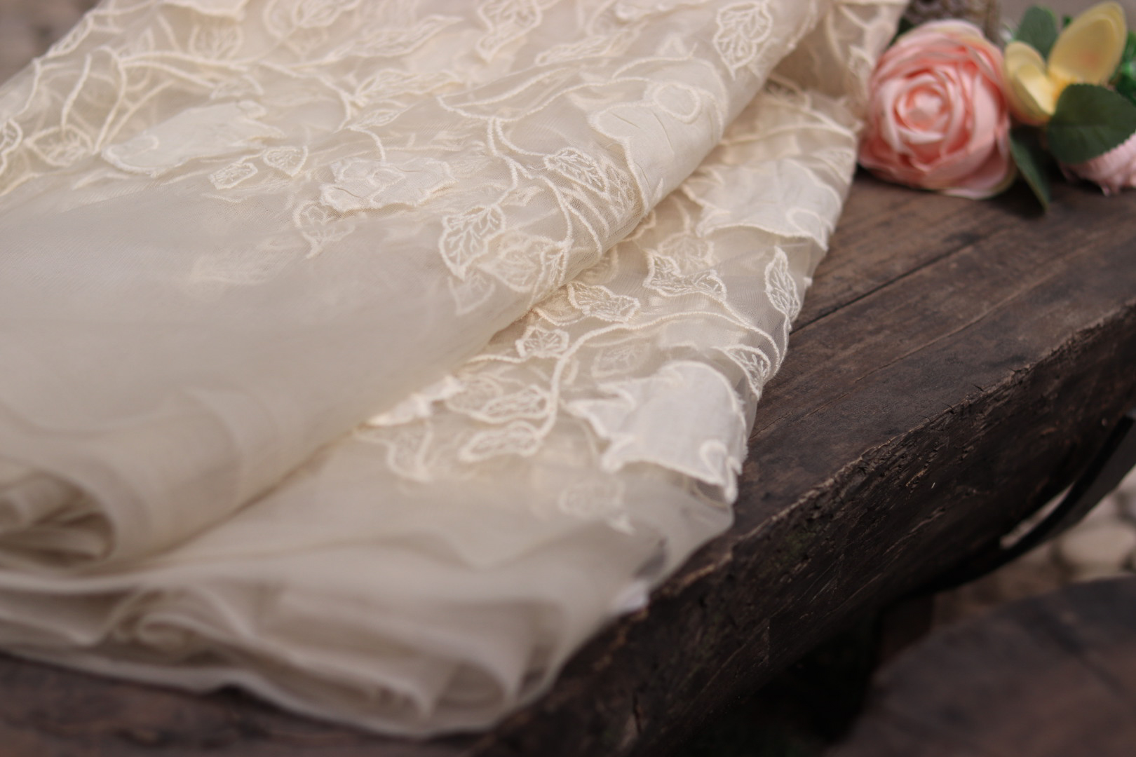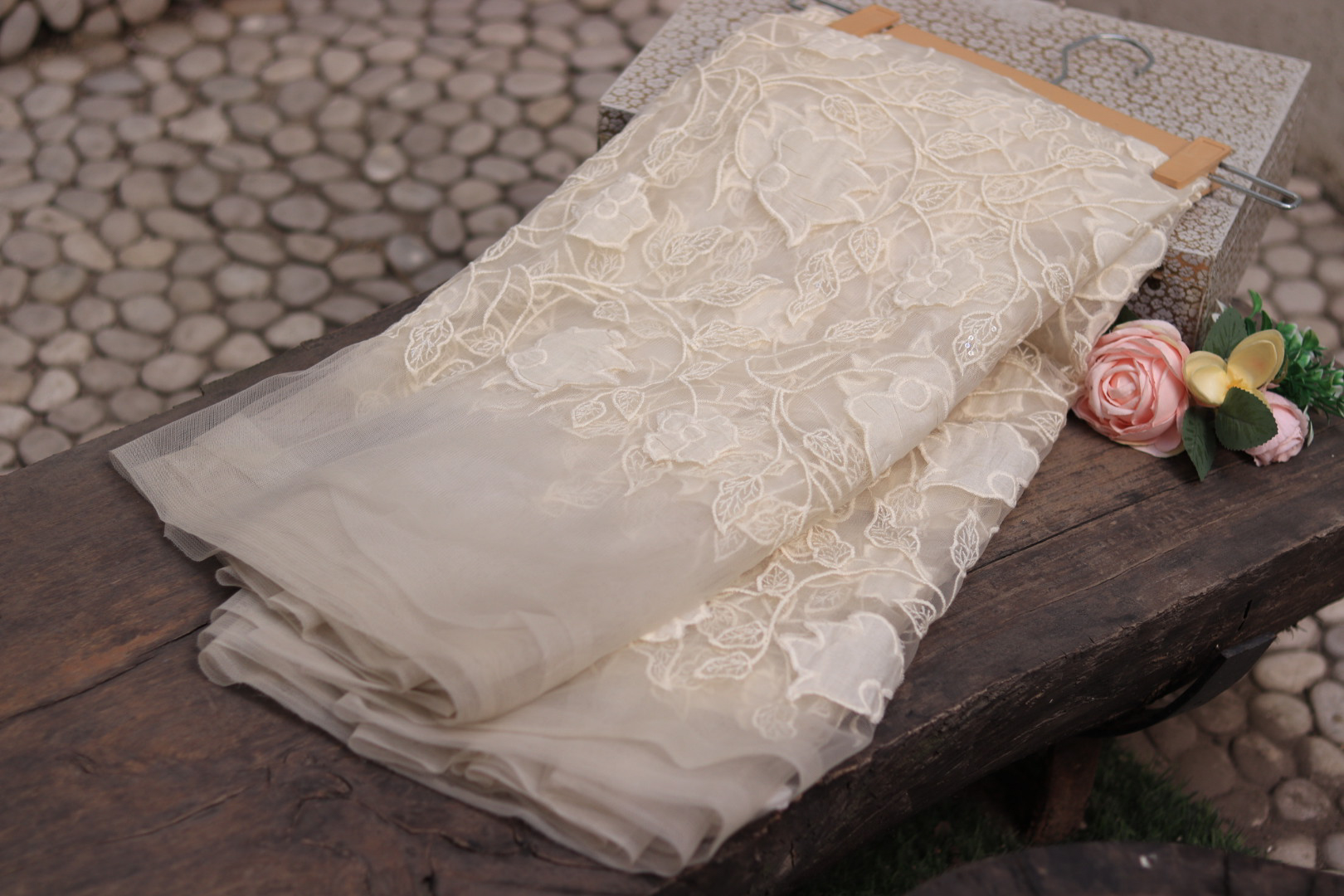 Dyeable Embroidered Net Fabric – Lightweight, Elegant & Customizable
