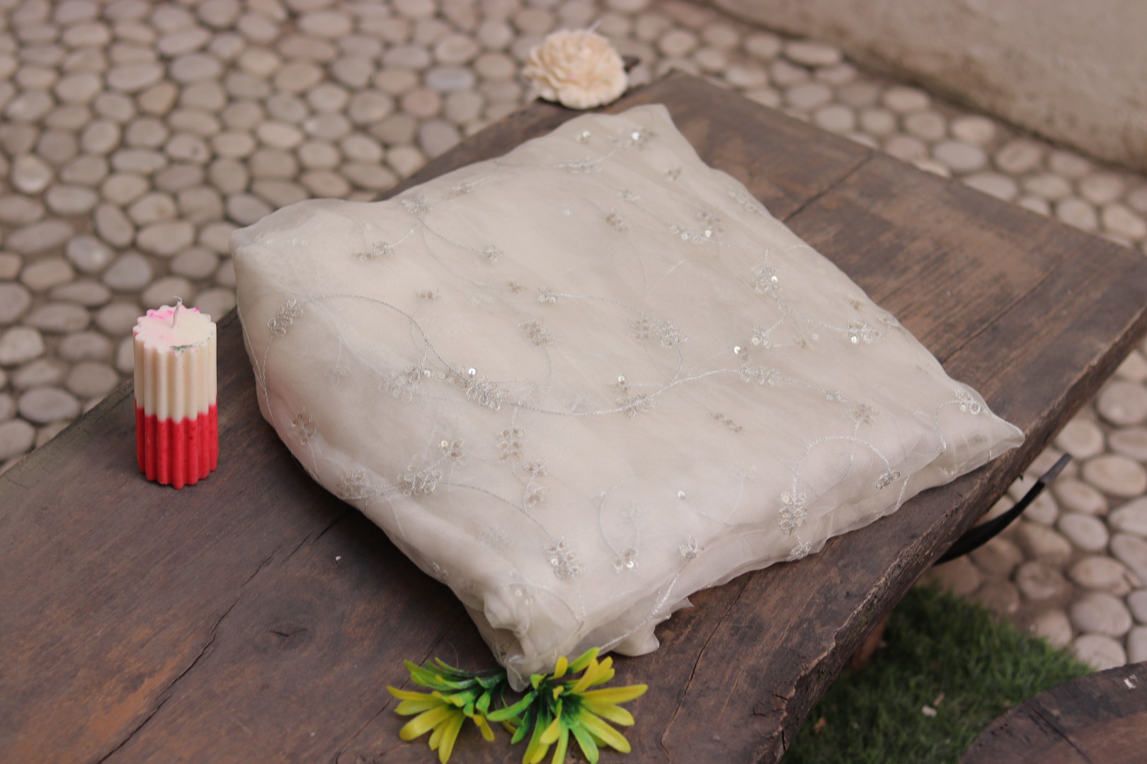 Dyeable Hand Embroidered Net Fabric