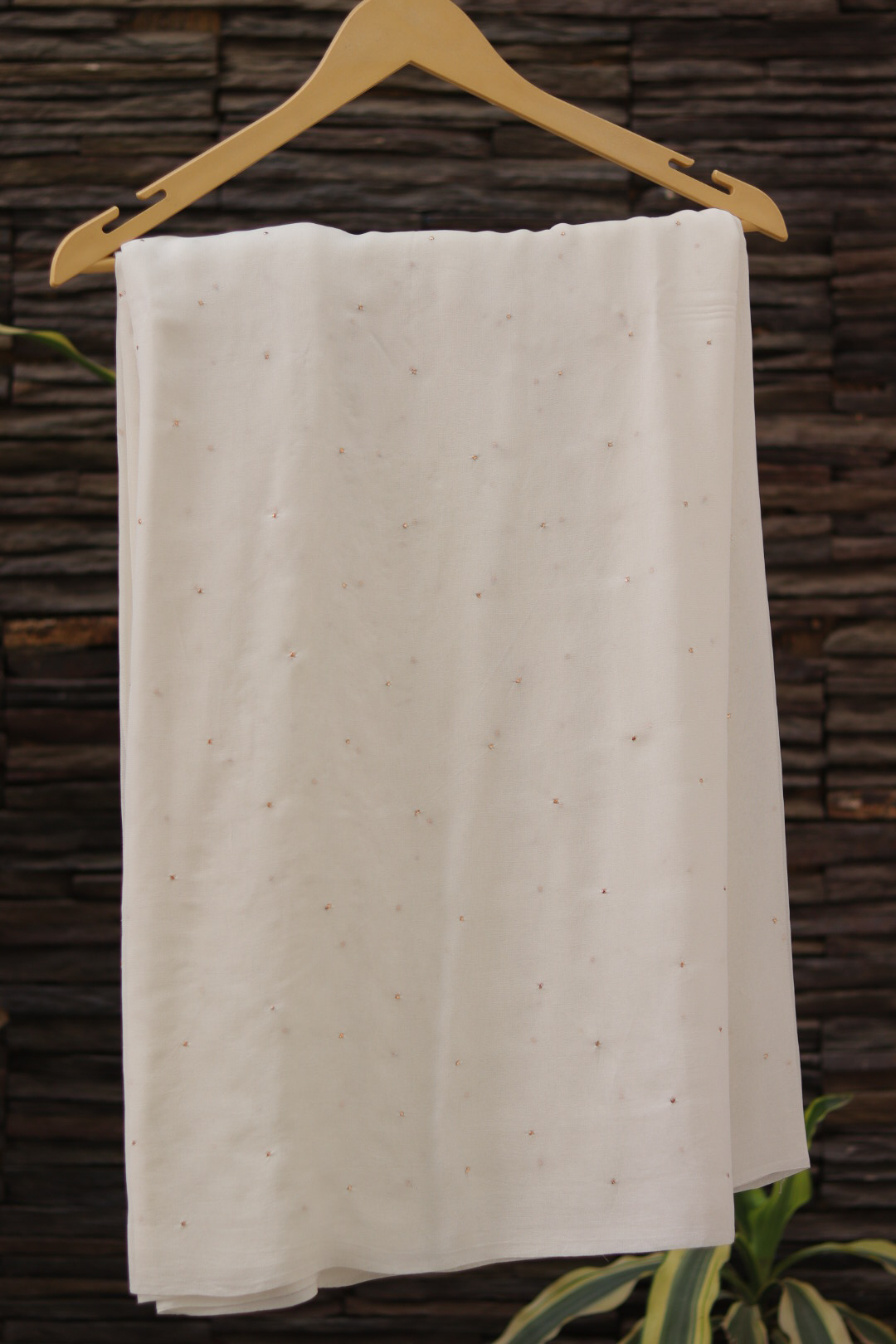 Elegant georgette fabric adorned with traditional Mukesh hand embroidery on a dyeable base, perfect for customized ethnic and festive ensembles.