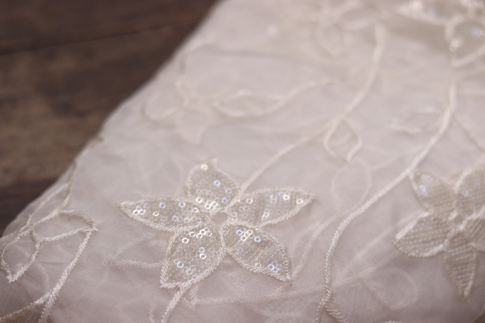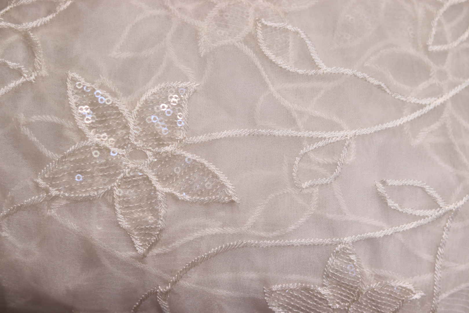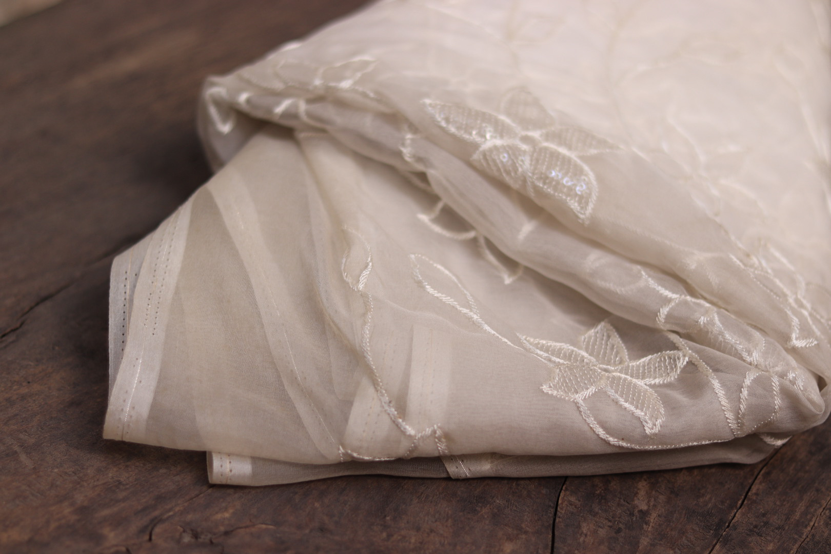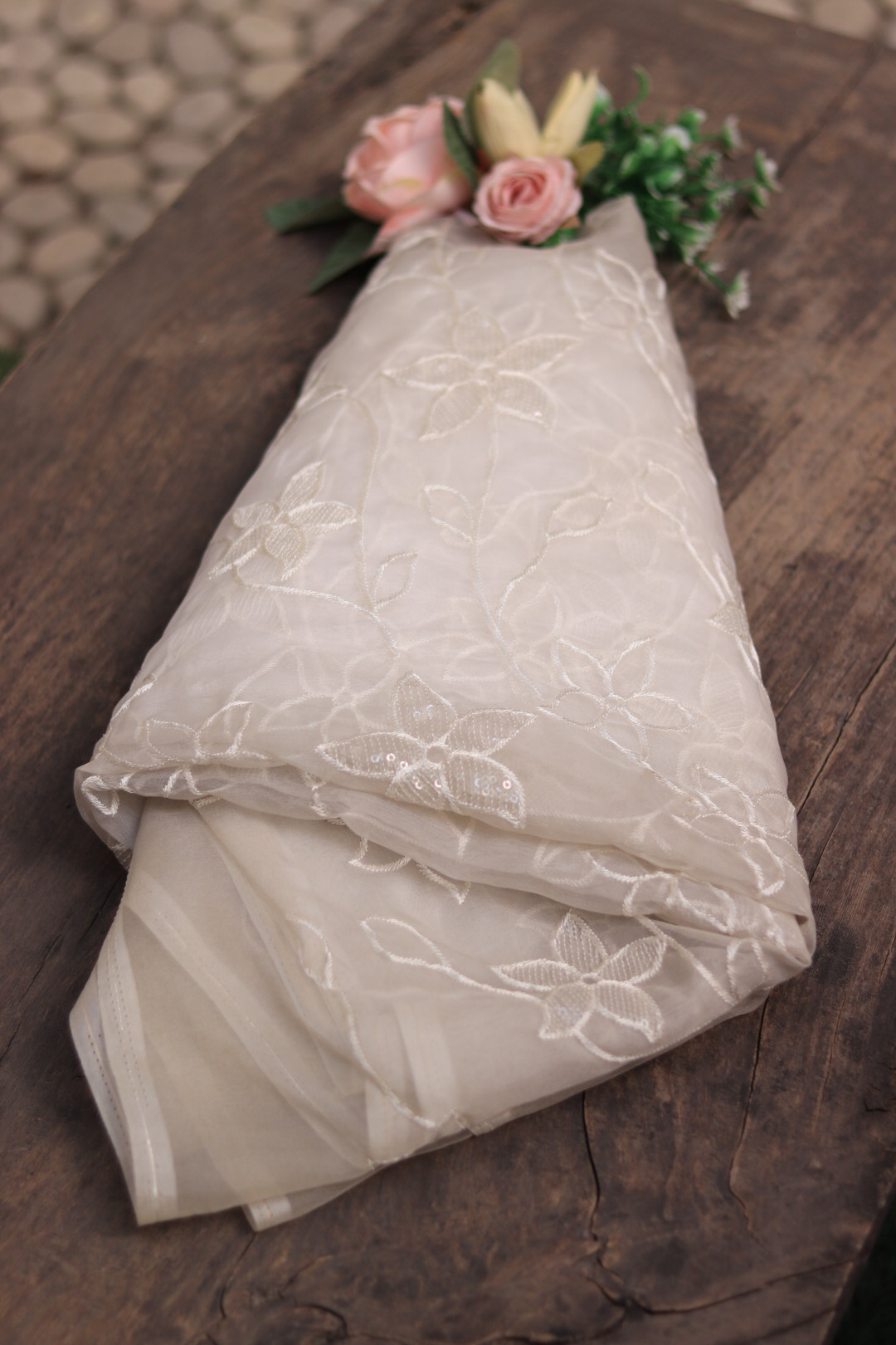 Dyeable Organza Embroidered Fabric – Lightweight & Customizable