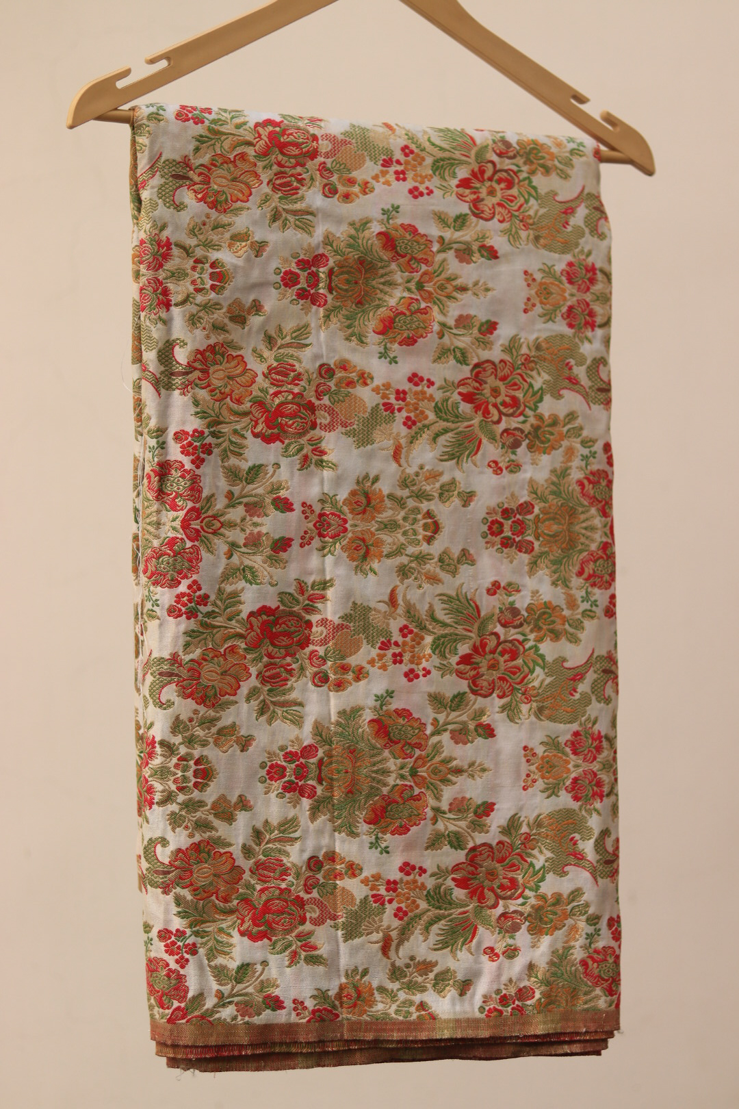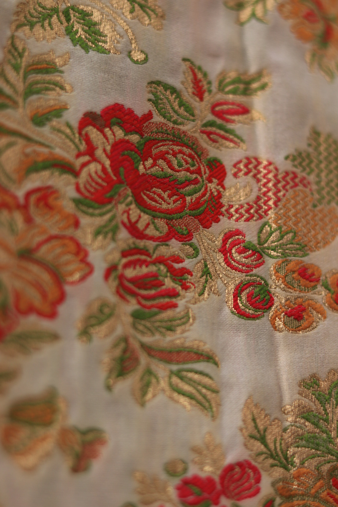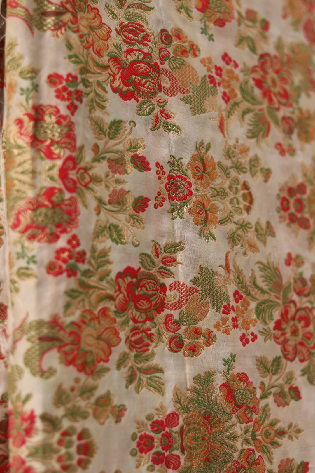 • Iron on low heat from the reverse side to preserve the brocade pattern and silk sheen.