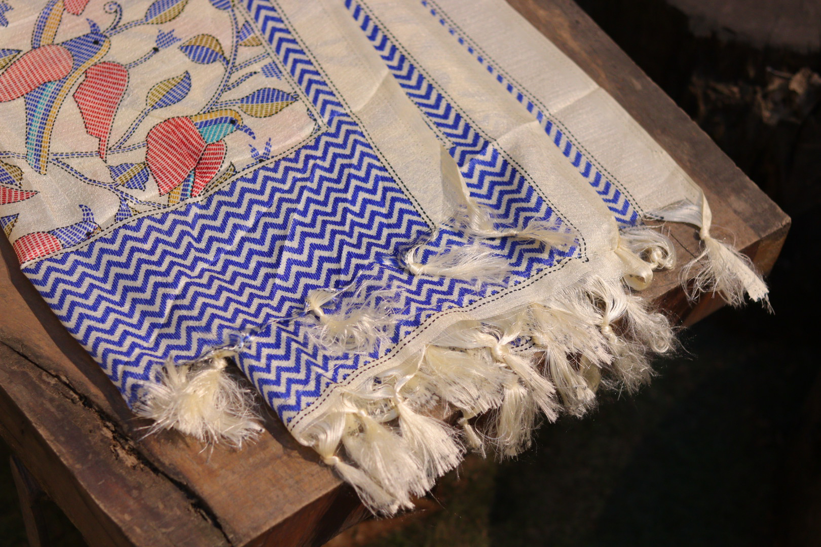 A beautiful multicolor silk dupatta featuring artistic prints and a lustrous drape. Lightweight, elegant, and perfect for festive or everyday ethnic looks.