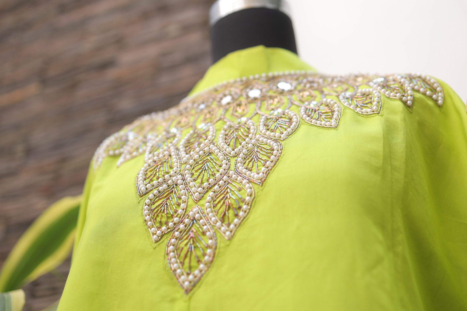 Dry clean recommended to preserve embroidery and fabric finish