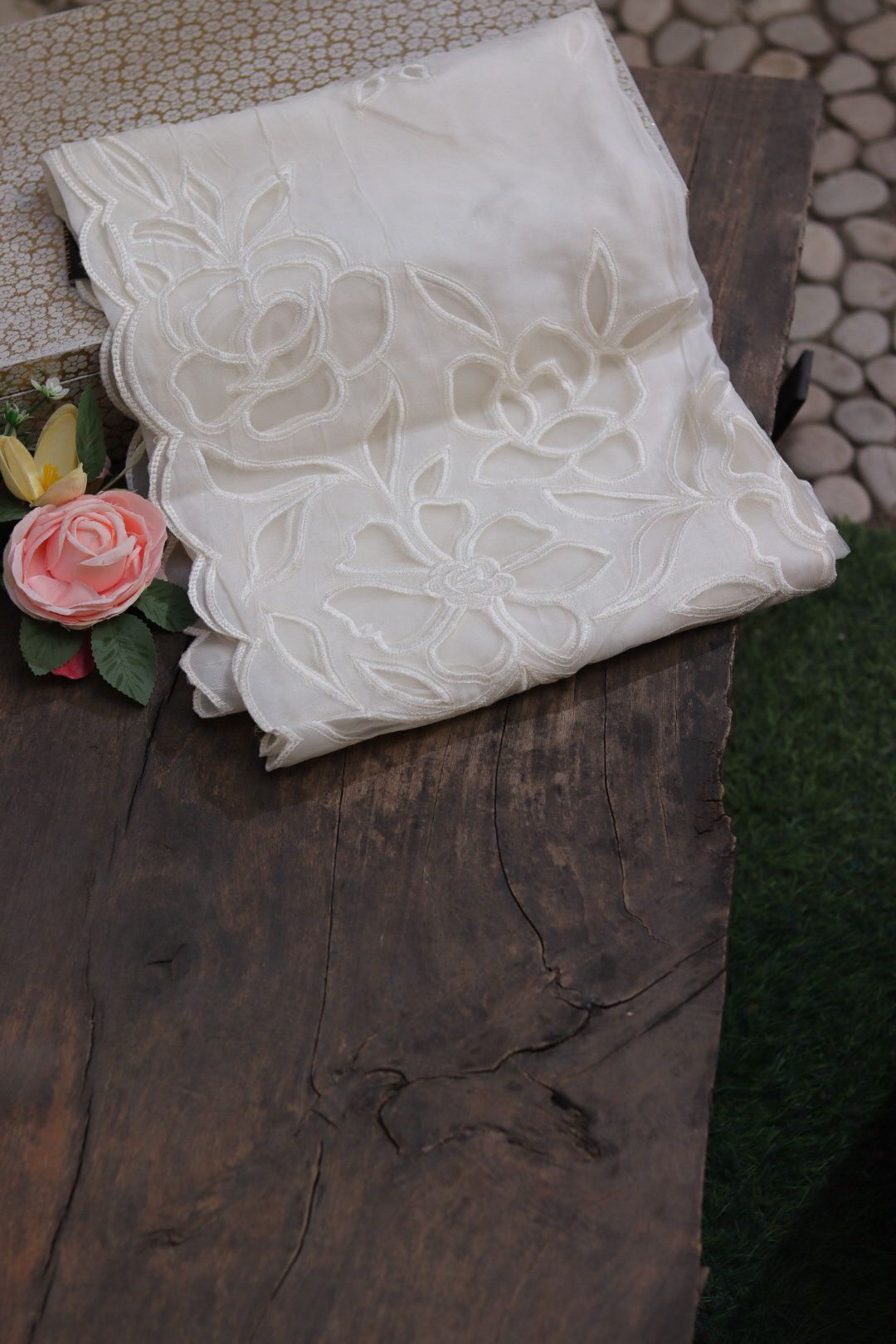 Rose Cutwork Heavy Tissue Dupatta – Dyeable Elegance