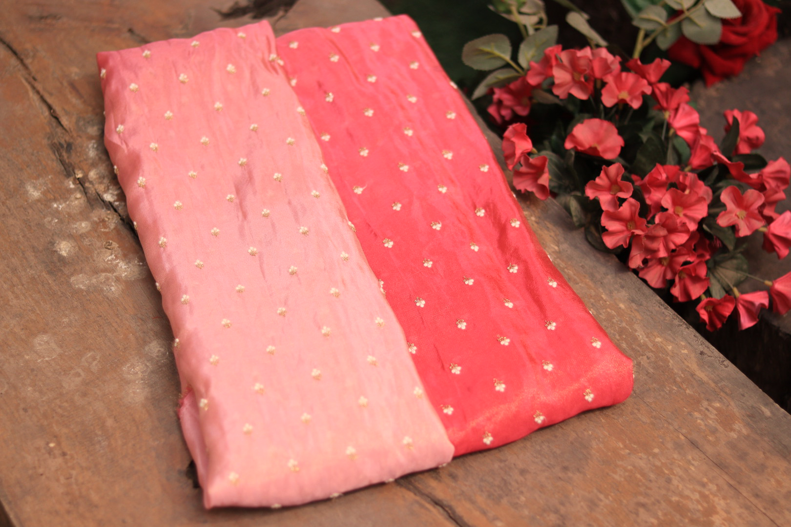 Shades of Pink Dual Shade Hand-Embroidered Tissue Fabric