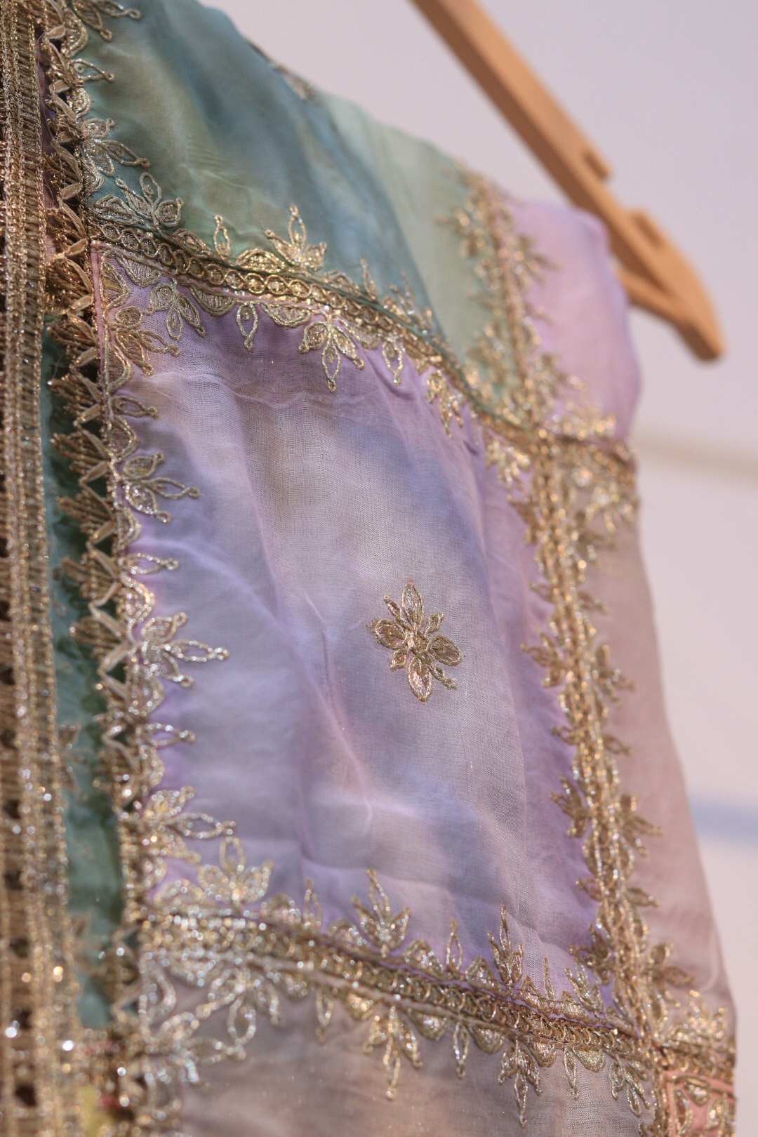 Store in a muslin cloth to maintain the tissue’s natural sheen and embroidery detailing.