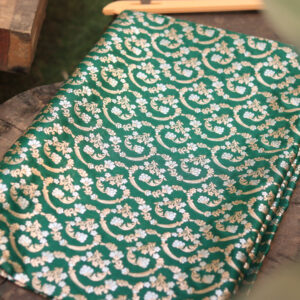 Rich and luxurious green brocade silk fabric with intricate woven patterns. Ideal for creating ethnic wear, festive outfits, and designer ensembles.