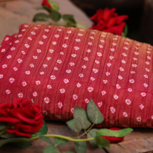 A soft and lightweight crush tissue fabric in pink, featuring traditional Bandhej patterns. Flowing, elegant, and perfect for festive or ethnic outfits.